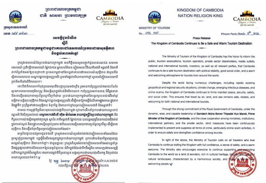 AKP Phnom Penh, March 11, 2026 -- The Ministry of Tourism has reaffirmed that the Kingdom of Cambodia continues to be a safe and warm destination for travellers, citing the country’s political stability, social order, and welcoming environment for visitors from aroun...