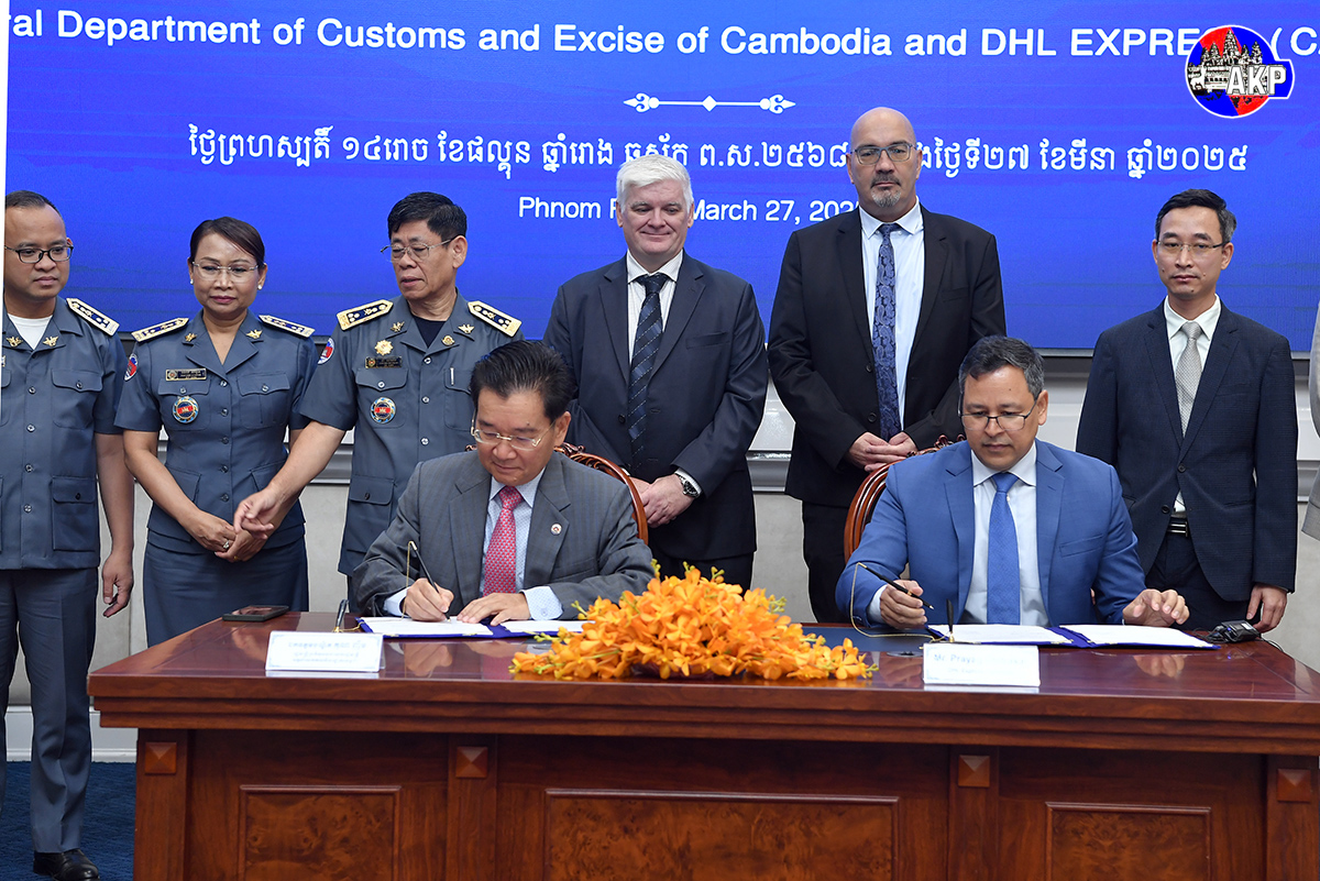 AKP Phnom Penh, March 27, 2025 -- The General Department of Customs and Excise of Cambodia (GDCE) and DHL EXPRESS (CAMBODIA) LTD. have signed a memorandum of understanding on the management and exchange of information on express parcels. The MoU was inked by H.E....