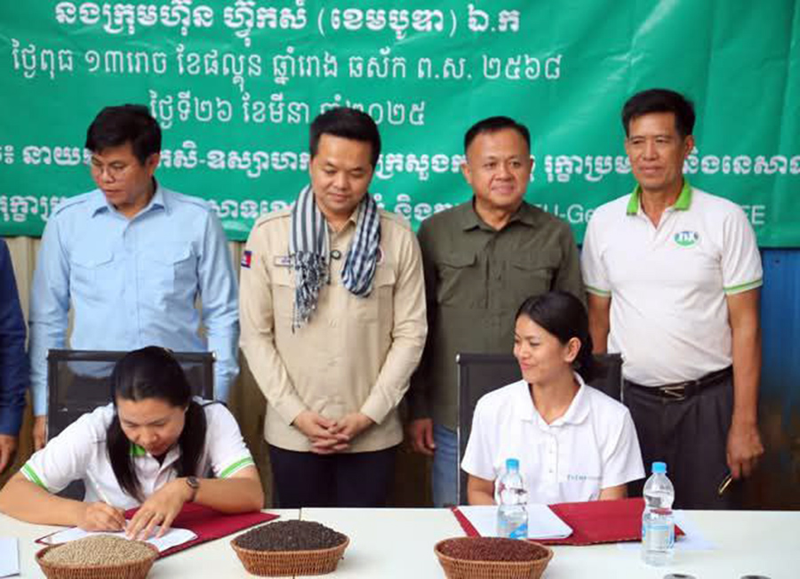 AKP Phnom Penh, March 27, 2025 -- A black pepper sales contract worth US$700,000 was officially signed between the Mrech Memut Thbong Khmum Modern Agricultural Community and FUCHS Cambodia, as confirmed by H.E. Khim Finan, Undersecretary of State at the Ministry of A...