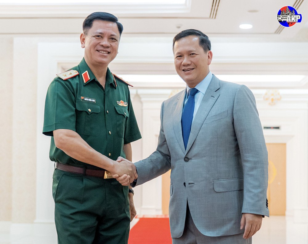 AKP Phnom Penh, March 25, 2025 -- Samdech Moha Borvor Thipadei Hun Manet, Prime Minister of the Kingdom of Cambodia, received Lt. Gen. Nguyen Truong Thang, Commander of Military Region 7 of the People's Army of Vietnam, at the Peace Palace in Phnom Penh this afternoo...