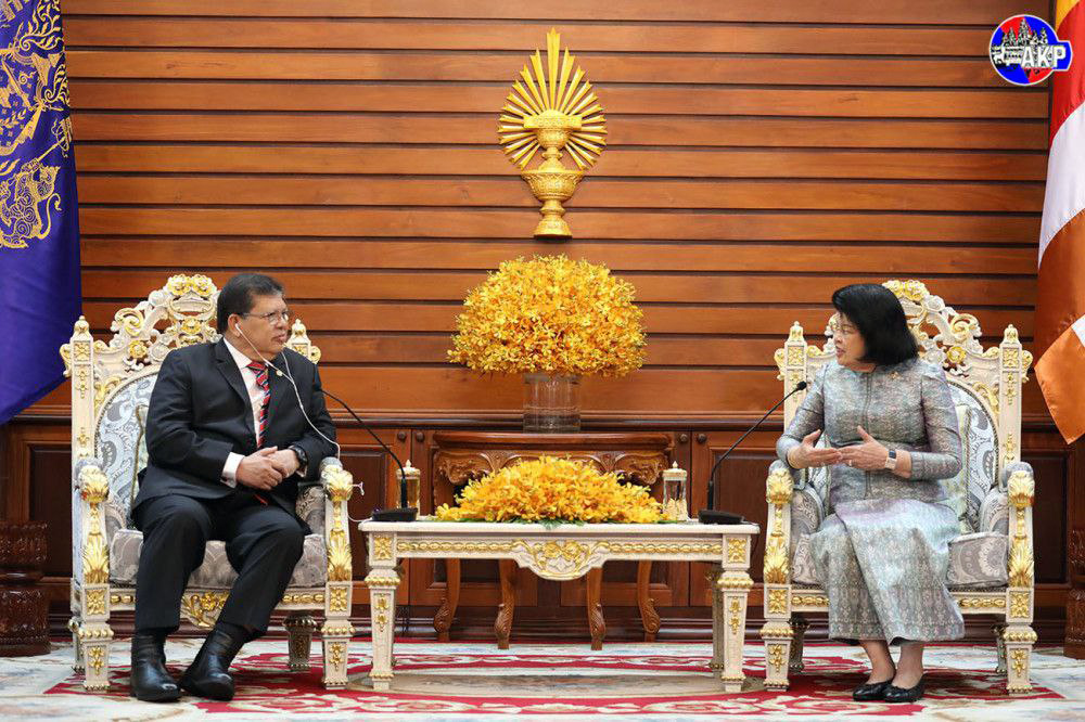 AKP Phnom Penh, le 25 mars 2025 -- Samdech Maha Rathsapheathika Thipadei Khuon Sudary, President of the National Assembly, met here on Mar. 25 with Hon. Tan Sri Dato' Dr. Johari bin Abdul, Speaker of Malaysia’s House of Representatives. During the meeting at the N...