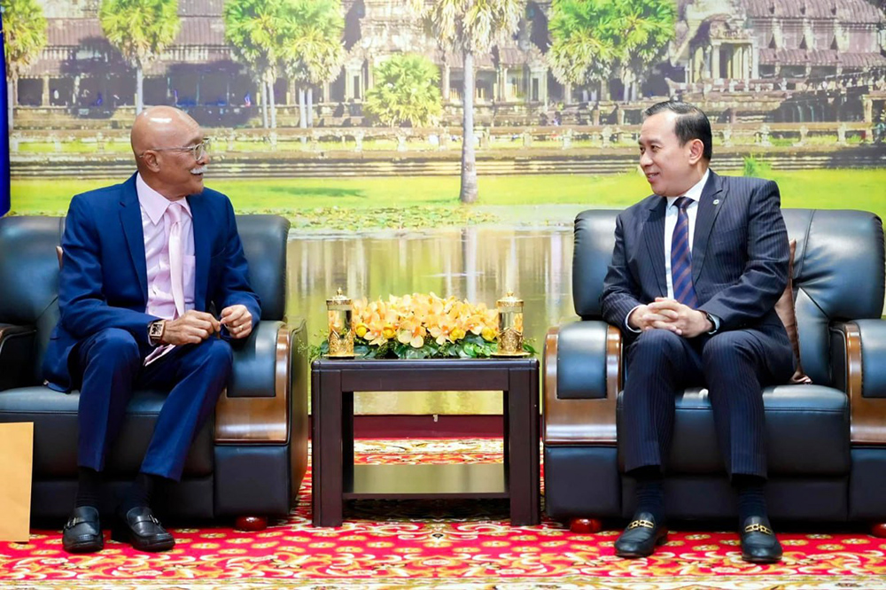 AKP Phnom Penh, February 19, 2025 -- Cambodian Minister of Tourism H.E. Huot Hak received here on Feb. 18 Mr. Dato’ Borhanuddin Osman, CEO of Amaz Maxs, and his team for a courtesy call and work discussion on potential collaboration. In the meeting, Mr. Dato...