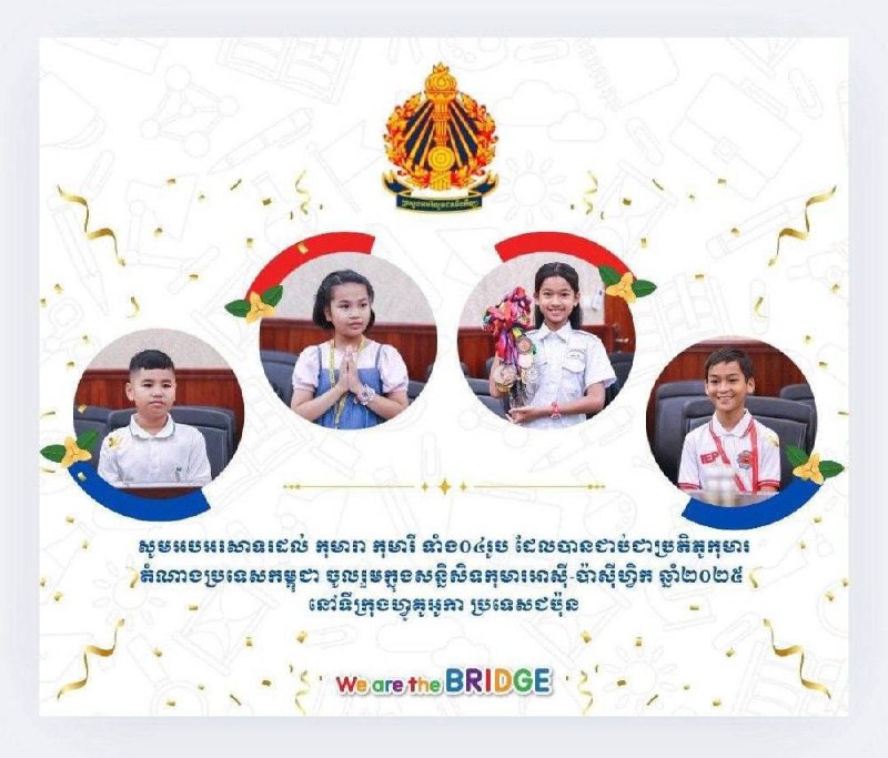 AKP Phnom Penh, February 12, 2025 -- The Ministry of Education, Youth, and Sports applauses eight selected and reserve child candidates for the Asian-Pacific Children's Convention (APCC) 2025 in Fukuoka city, Japan. The eight child candidates were shortlisted foll...