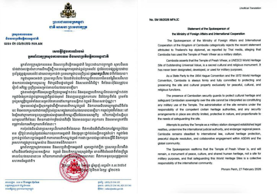AKP Phnom Penh, February 27, 2026 -- The Ministry of Foreign Affairs and International Cooperation of the Kingdom of Cambodia has categorically rejected allegations attributed to Thailand’s top diplomat, as reported by Thai media, claiming that Cambodia has used the...