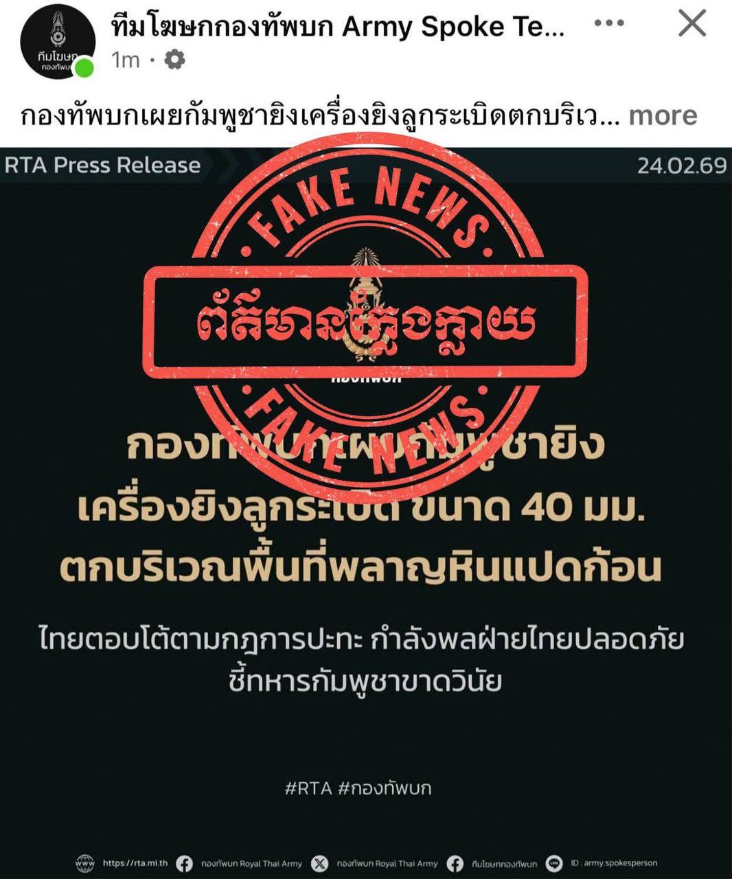 AKP Phnom Penh, February 24, 2026 — Cambodia’s Ministry of National Defence has categorically denied reports by several Thai media outlets alleging that Cambodian forces fired a 40mm grenade toward a Thai patrol position in Preah Vihear province. According to the...