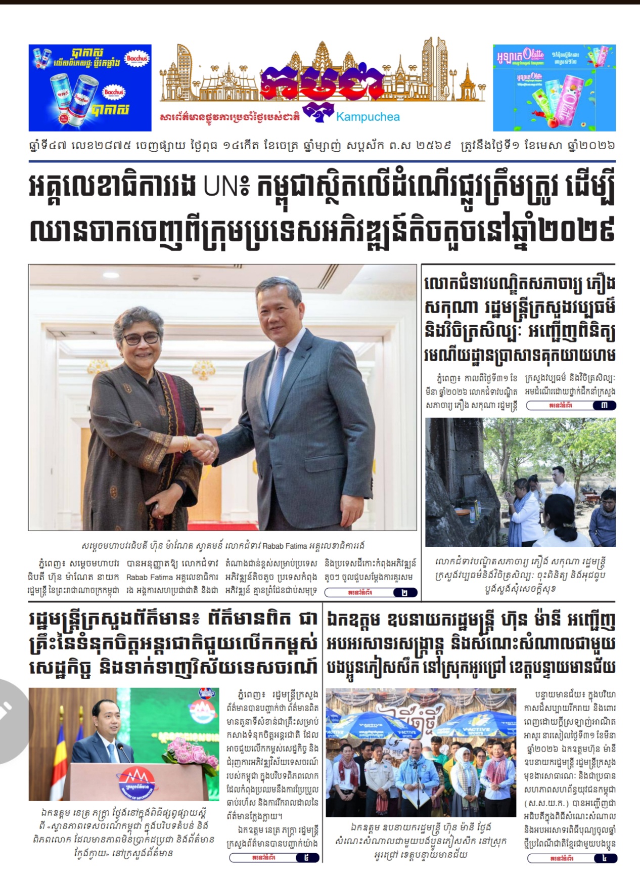 កាសែតកម្ពុជាលេខ២៨៧៨ ចេញផ្សាយថ្ងៃចន្ទ ទី០៦ ខែមេសា ឆ្នាំ២០២៦
