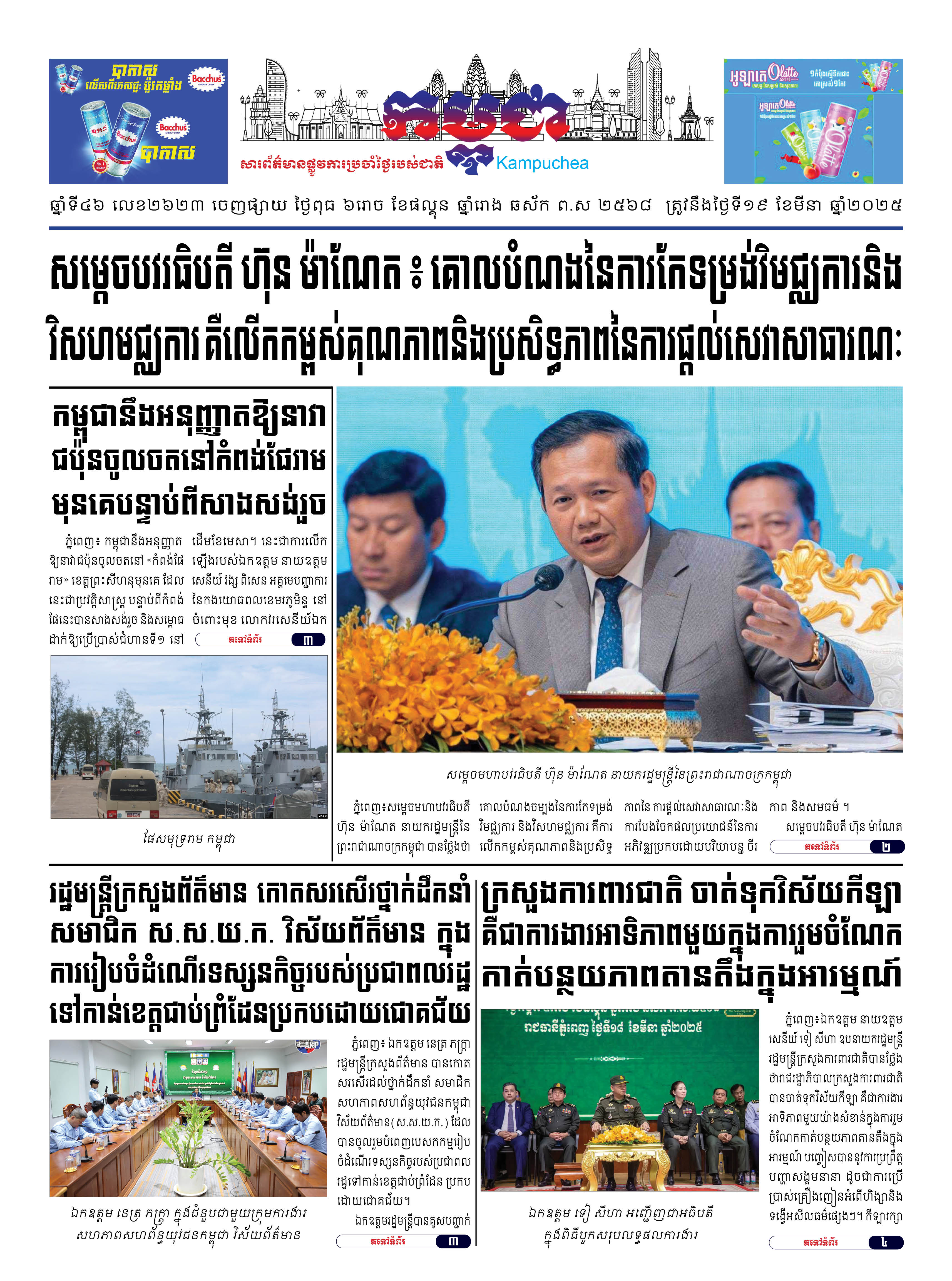 កាសែតកម្ពុជាលេខ២៦២៣ ចេញផ្សាយថ្ងៃពុធ ទី១៩ ខែមីនា ឆ្នាំ២០២៥