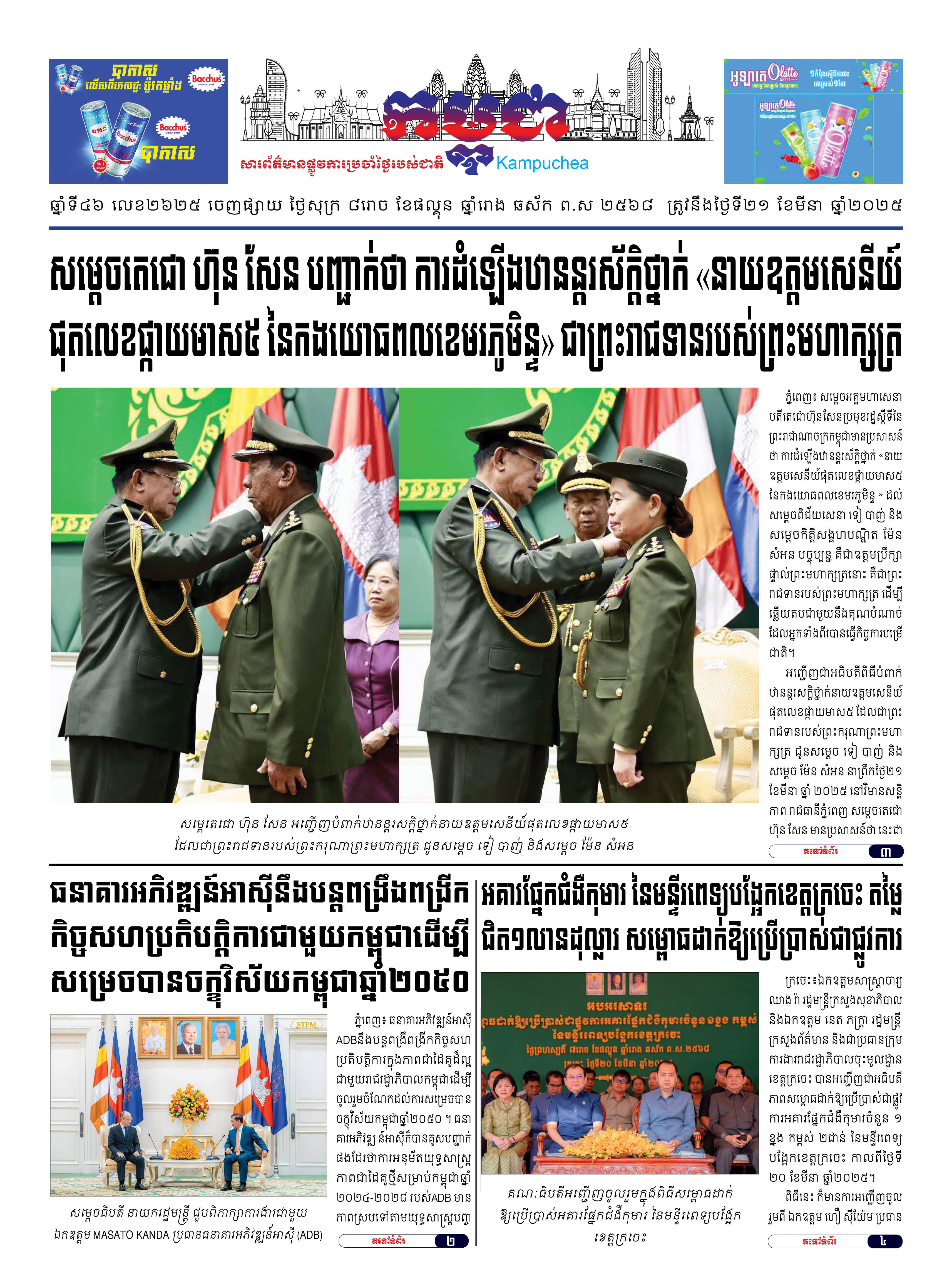 កាសែតកម្ពុជាលេខ២៦២៥ ចេញផ្សាយថ្ងៃសុក្រ ទី២១ ខែមីនា ឆ្នាំ២០២៥