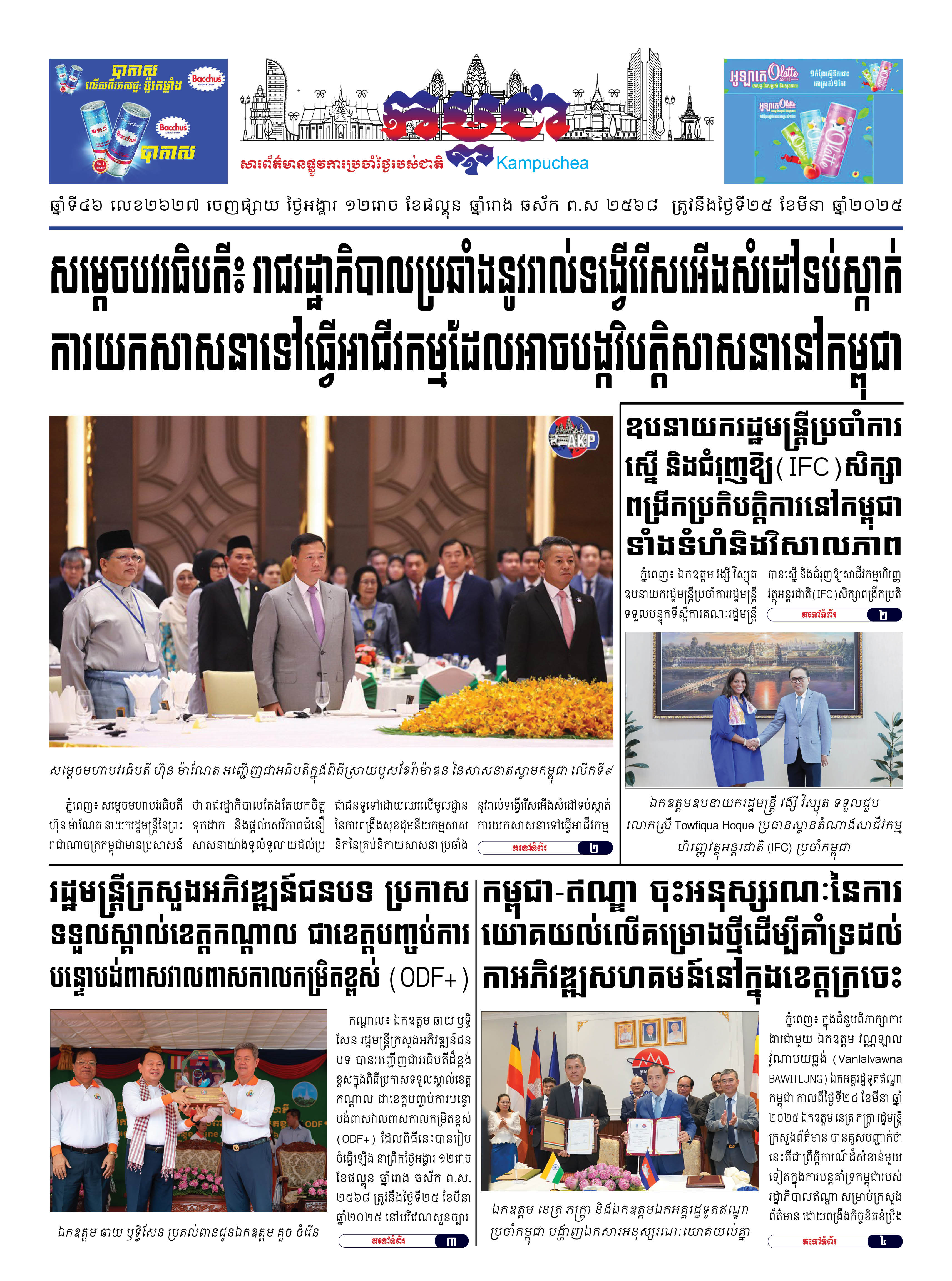 កាសែតកម្ពុជាលេខ២៦២៧ ចេញផ្សាយថ្ងៃអង្គារ ទី២៥ ខែមីនា ឆ្នាំ២០២៥