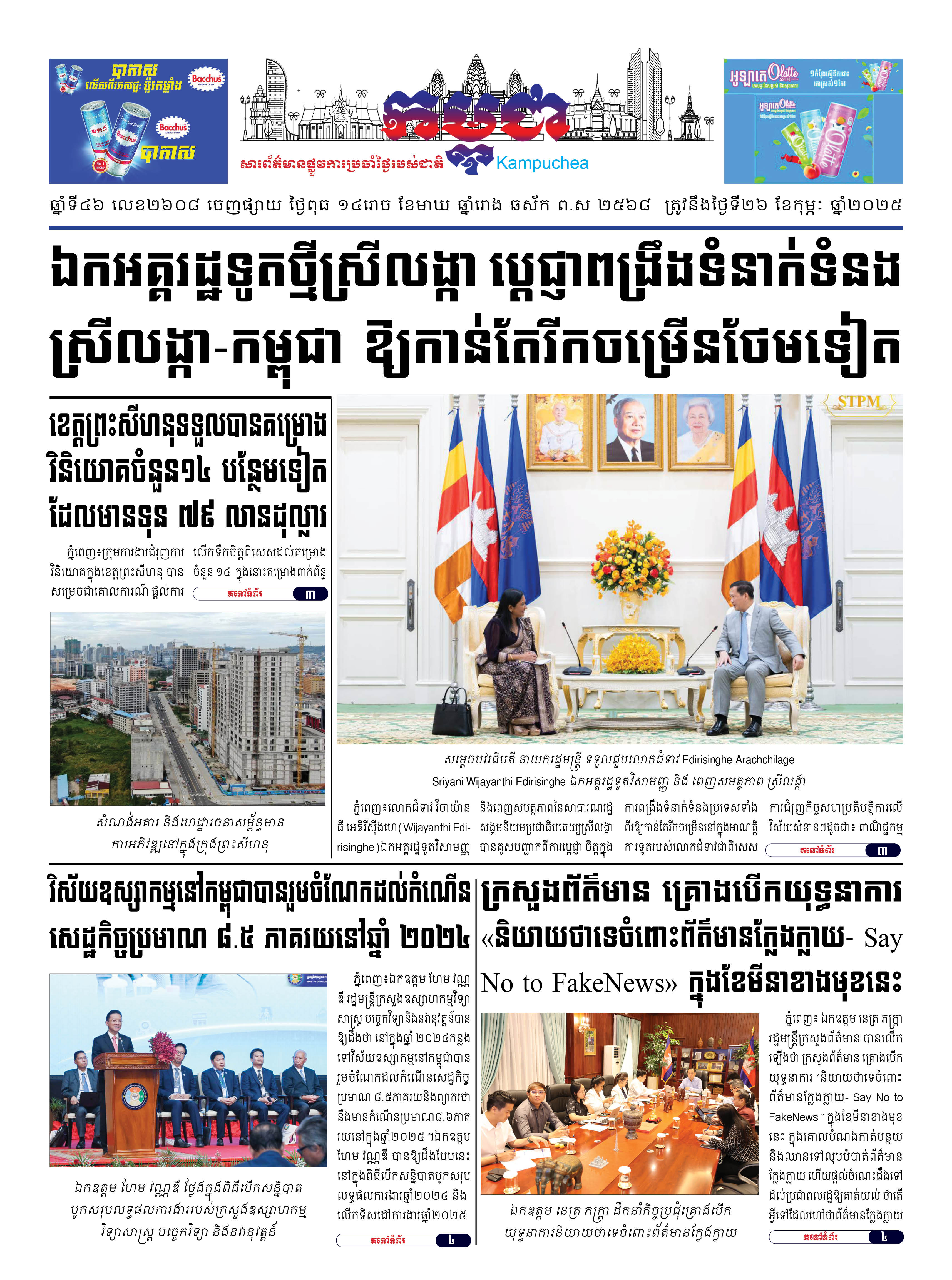 កាសែតកម្ពុជាលេខ២៦០៨ ចេញផ្សាយថ្ងៃពុធ ទី២៦ ខែកុម្ភៈ ឆ្នាំ២០២៥