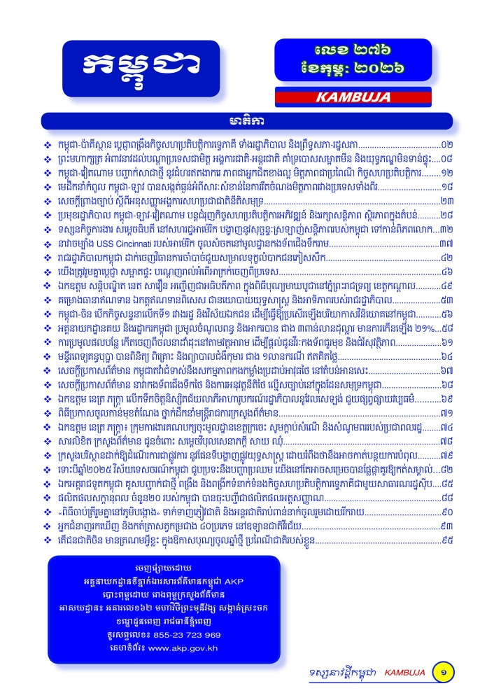 ទស្សនាវដ្តីកម្ពុជាចេញផ្សាយសម្រាប់ «ខែកុម្ភៈ» ឆ្នាំ២០២៦