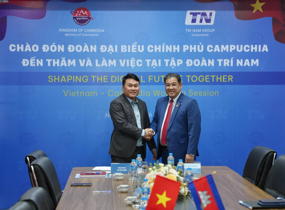 AKP Hanoi, March 31, 2026– H.E. Sok Prasith (R, Pic. 1), Personal Advisor to Prime Minister Samdech Thipadei Hun Manet and Secretary of State at the Ministry of Information, shakes hands with Mr. Do Ba Dan, President of Tri Nam Group and Pacific Digital Tec...
