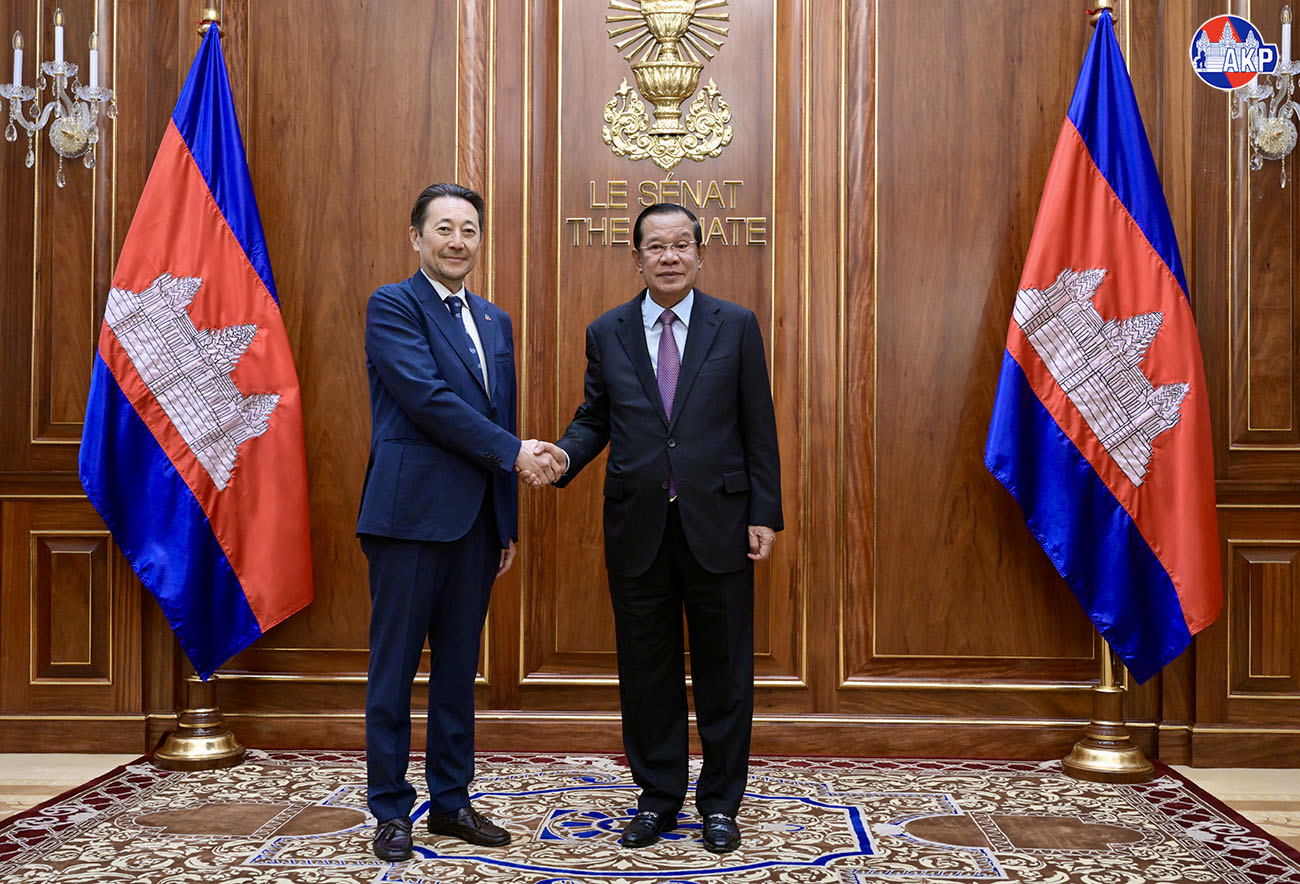 AKP Phnom Penh, March 31, 2026 — Samdech Akka Moha Sena Padei Techo Hun Sen (R, Pic. 1), Acting Head of State of the Kingdom of Cambodia, poses for a photo with H.E. Kairat Sarybay, Secretary General of the Conference on Interaction and Confidence Building Measures in...
