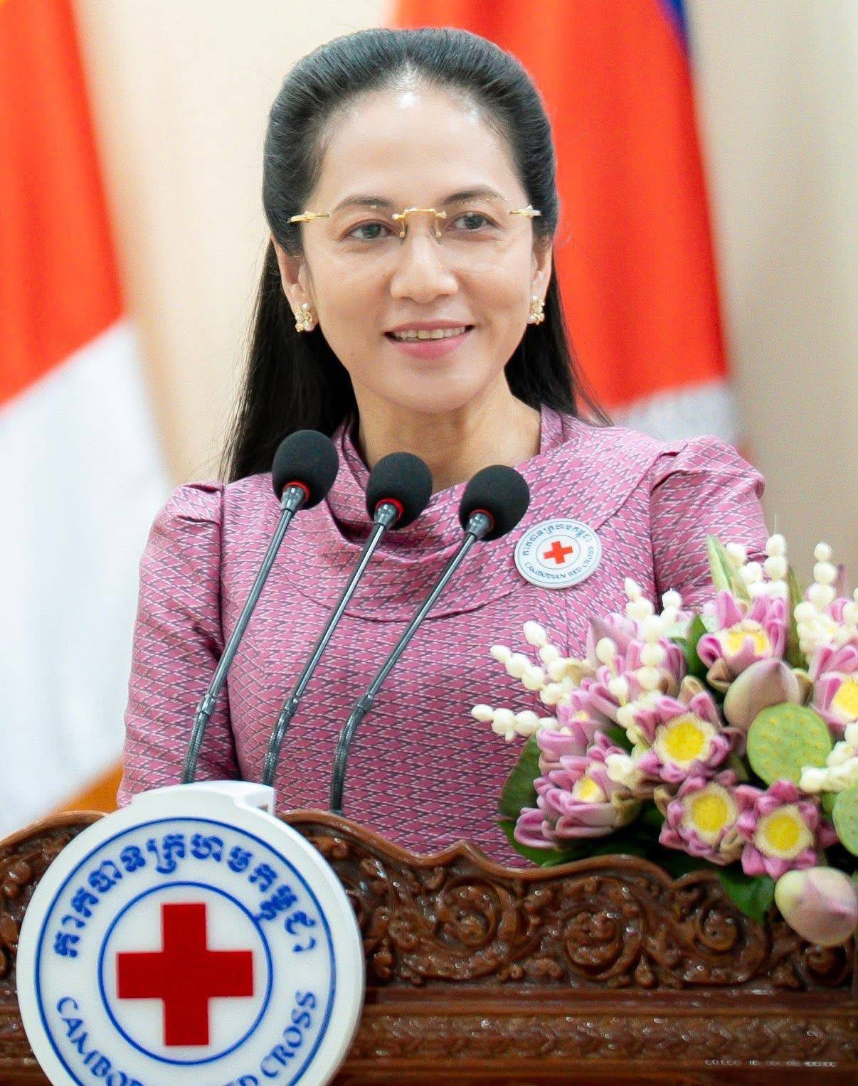 AKP Phnom Penh, March 31, 2026— First Lady Lok Chumteav Dr. Pich Chanmony Hun Manet (Pic. 1), Permanent Vice President of the Cambodian Red Cross (CRC), addresses the participants while she was presiding over the closing ceremony of a meeting on "Governance...