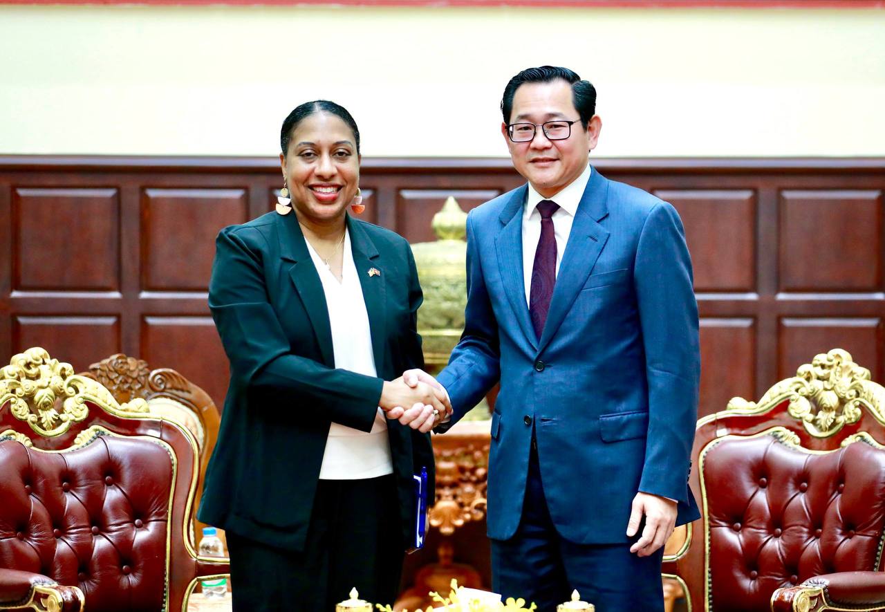AKP Phnom Penh, March 6, 2026 — H.E. Koeut Rith (R, Pic. 1), Deputy Prime Minister and Minister of Justice, poses for a photo with Ms. Bridgette L. Walker, Chargé d’Affaires of the U.S. Embassy in Cambodia, during their meeting at the Ministry on Mar. 6. Photo: Ministry of...
