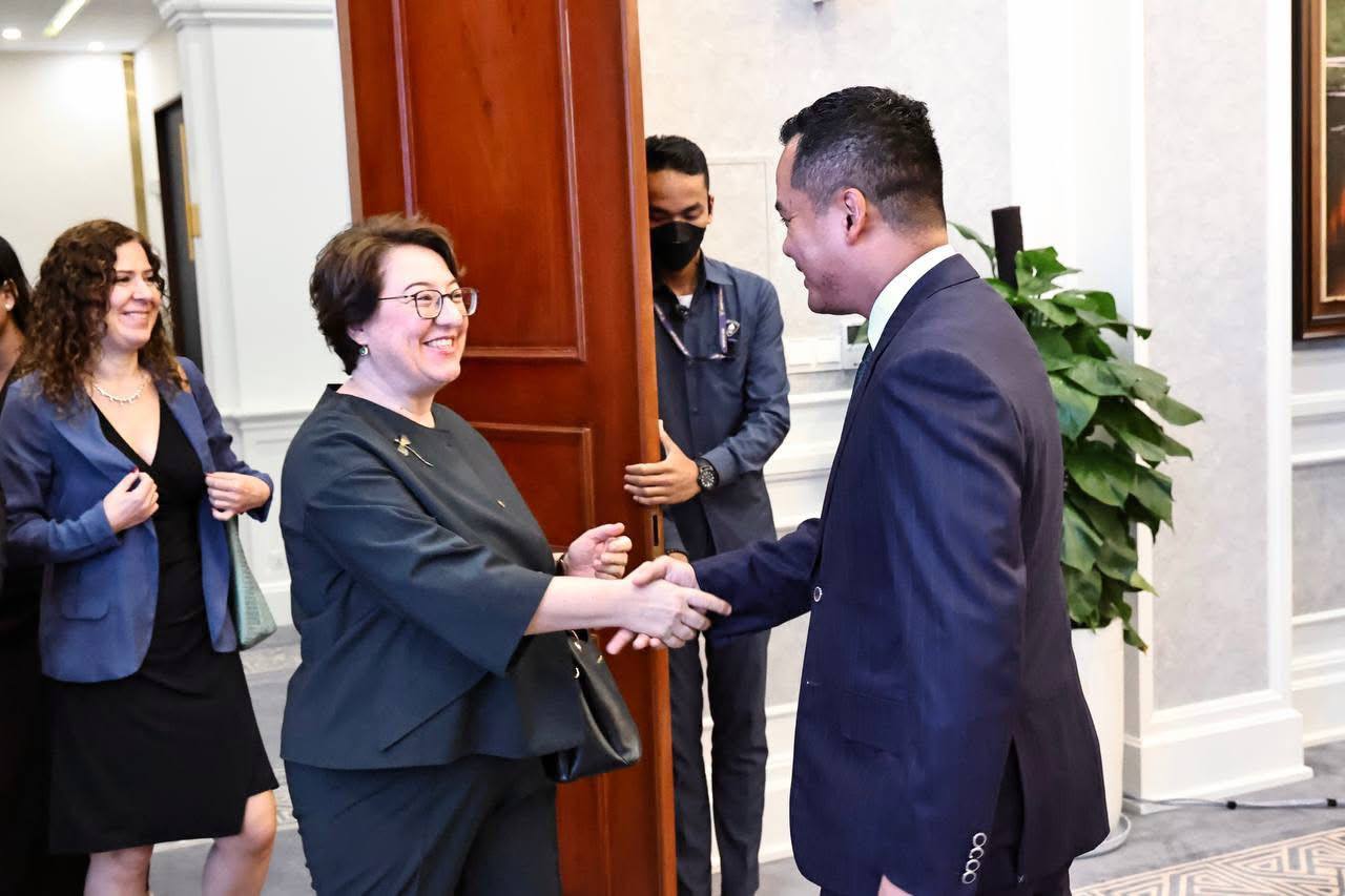 AKP Phnom Penh, March 10, 2026— H.E. Abhisantibindit Sar Sokha (R, Pic. 1), Deputy Prime Minister and Minister of Interior, greets H.E. Ms. Ülkü KOCAEFE, Ambassador of the Republic of Türkiye, prior to their meeting at the Ministry's Office in Phnom Penh this morning. P...