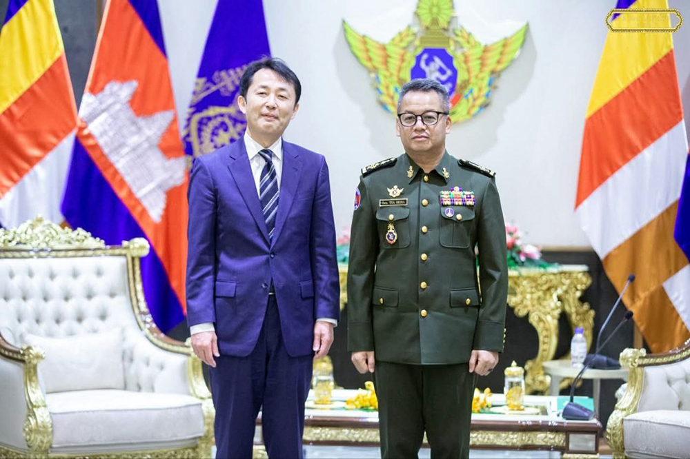 AKP Phnom Penh, February 25, 2026— H.E. Gen. Tea Seiha (L, Pic. 1), Deputy Prime Minister and Minister of National Defence, poses for a photo with H.E. HAYASHI Teiji, Japan’s Ambassador for Mekong Cooperation, prior to their courtesy call and work discussions at the Ministry t...