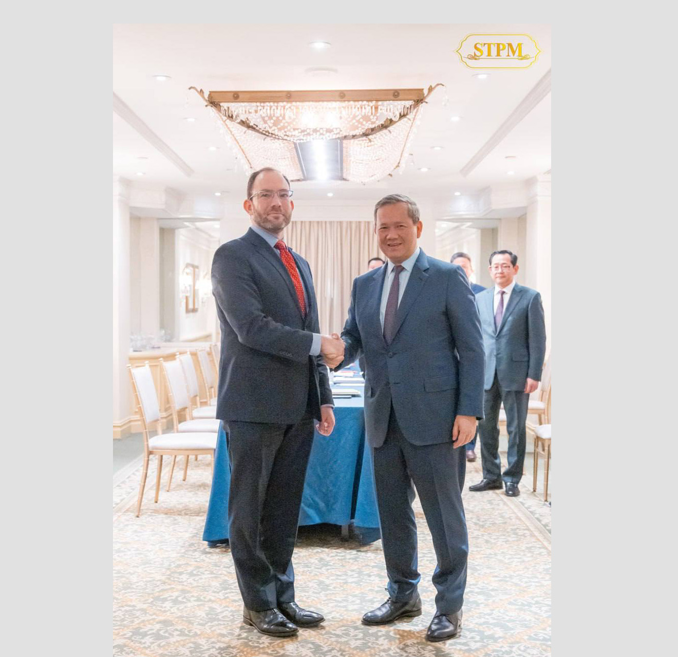 AKP Washington D.C., February 21, 2026— Prime Minister Samdech Moha Borvor Thipadei Hun Manet (R, Pic. 1) of the Kingdom of Cambodia shakes hands with H.E Elbridge A. Colby, U.S. Under Secretary of War, prior to a courtesy call and discussion on the morning of Feb. 20 (U.S...