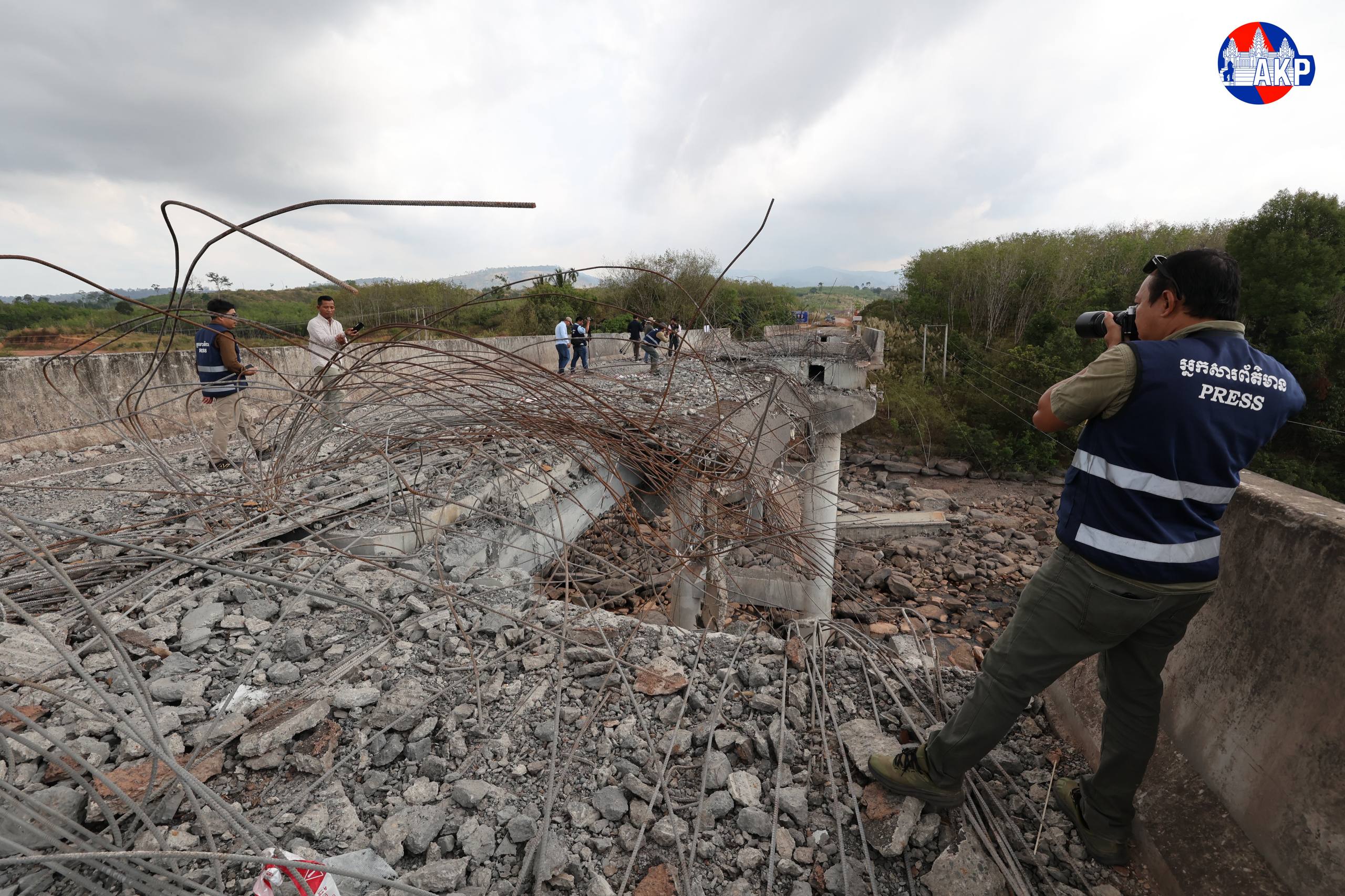 AKP Pursat, February 07, 2026 — Scenes show the complete destruction of Chey Chumneas Bridge, located in Thmar Da commune, Veal Veng district, Pursat province, by Thai F-16 fighter jets on Dec. 13, 2025. Photo: Khem Sovannara