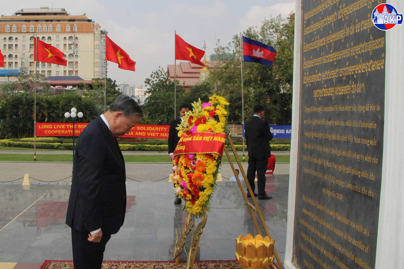 AKP Phnom Penh, February 06, 2026— H.E. To Lam (Pic. 1), General Secretary of the Communist Party of Vietnam, lays a wreath at the Cambodia-Viet Nam Friendship Monument in Phnom Penh this morning, as part of his day-long state visit to the Kingdom of Cambodia. Photo: La...