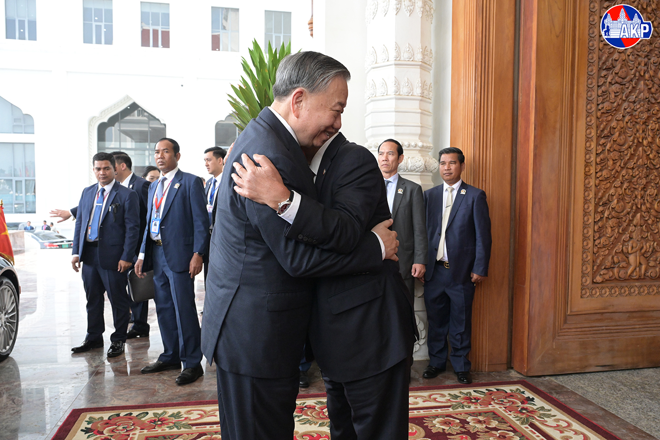 AKP Phnom Penh, February 06, 2026— Samdech Akka Moha Sena Padei Techo Hun Sen (R, Pic. 1), President of the Cambodian People’s Party (CPP), warmly greets visiting H.E. To Lam, General Secretary of the Communist Party of Vietnam (CPV), prior to their summit at the J...