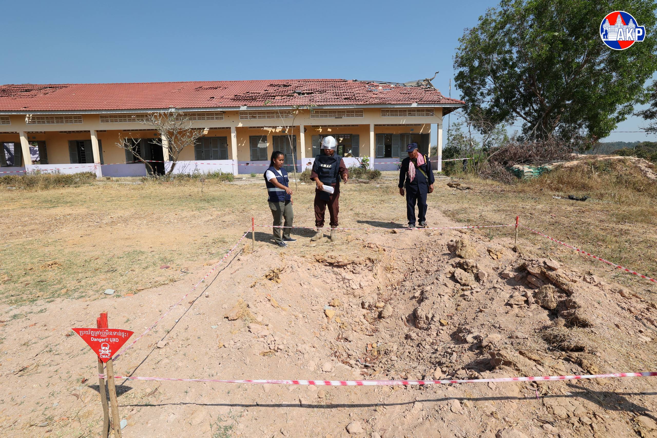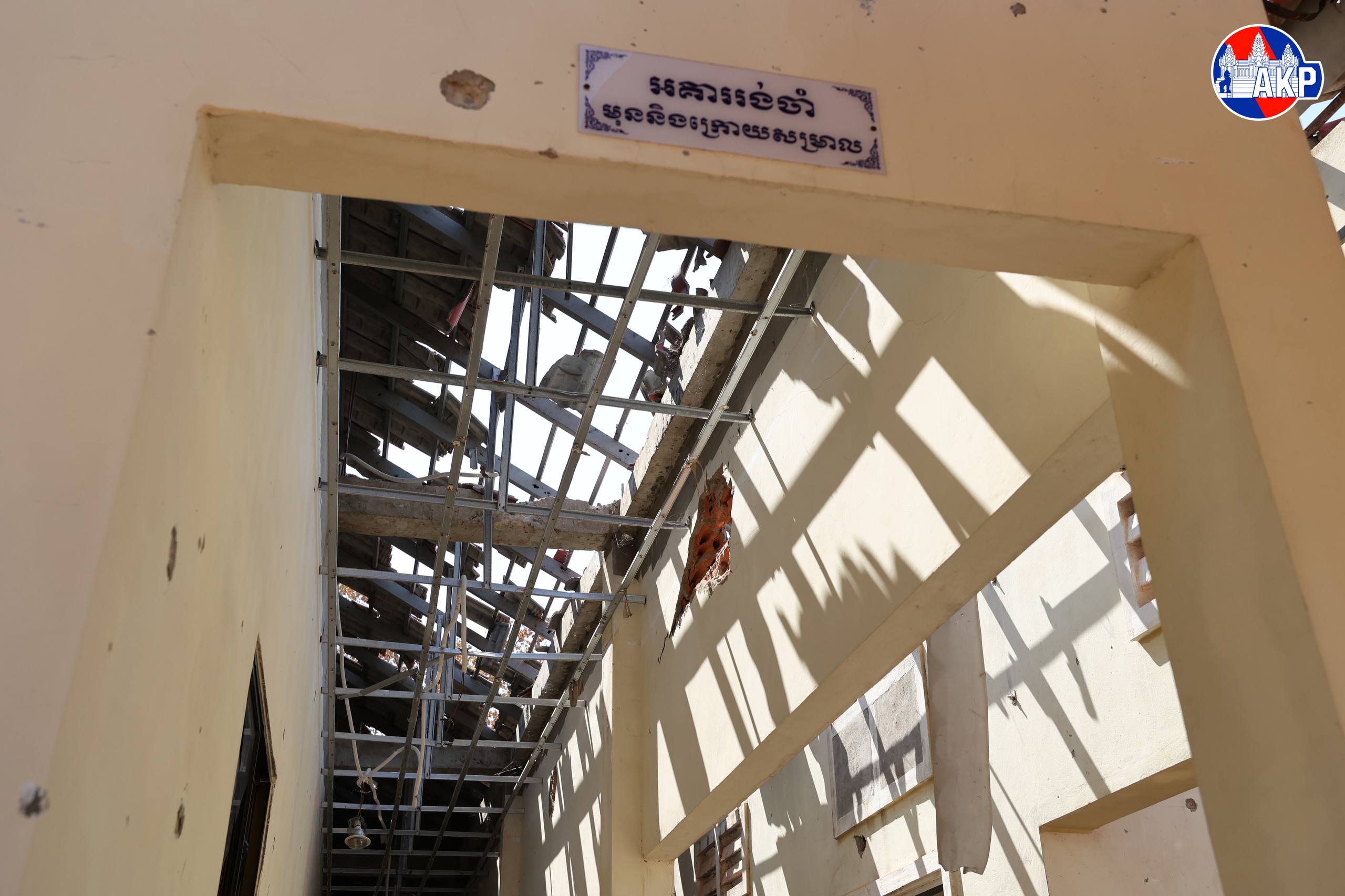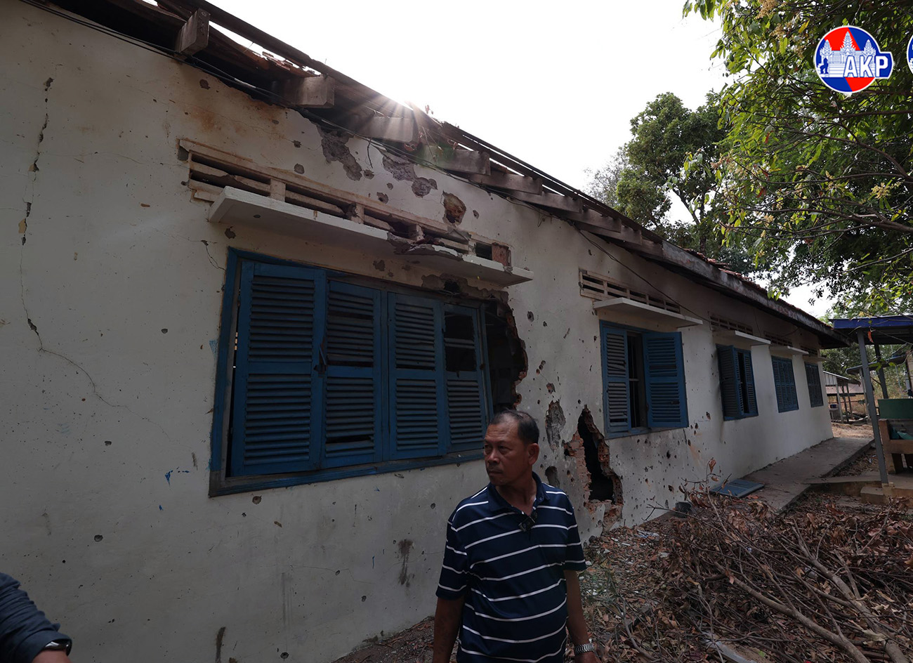 AKP Oddar Meanchey, February 05, 2026— Images of severe damage suffered by Tamoun Senchey Primary School, located about 2 kilometres from the border in Kok Mon commune, Banteay Ampil district, Oddar Meanchey province due to shelling and bombing by Thai soldiers...