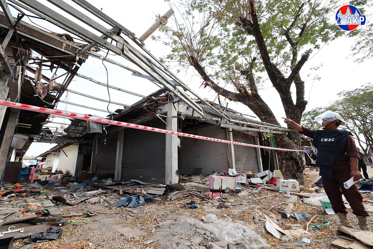 AKP Oddar Meanchey, February 05, 2026– General view of O’Smach Market in Samrong city, Oddar Meanchey province and the surrounding civilian areas, which were damaged by recent shelling by Thai aggressive forces. Photo: Khem Sovannara
