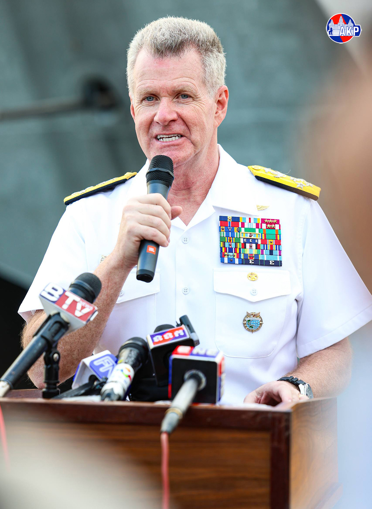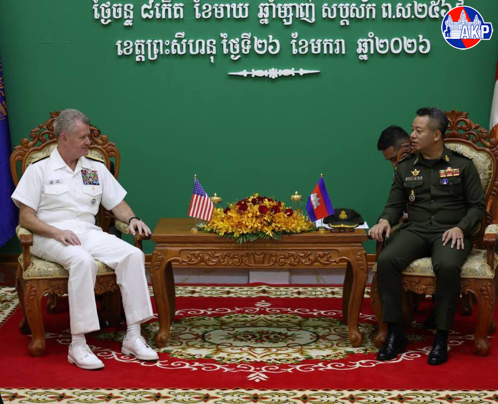 AKP Preah Sihanouk, January 26, 2026 — H.E. Admiral Samuel Paparo (Pic. 1), Commander of the United States Indo-Pacific Command, holds a press conference this afternoon at Ream Naval Base in Preah Sihanouk province, briefing the media on the five-day (Jan. 24-28) port call...