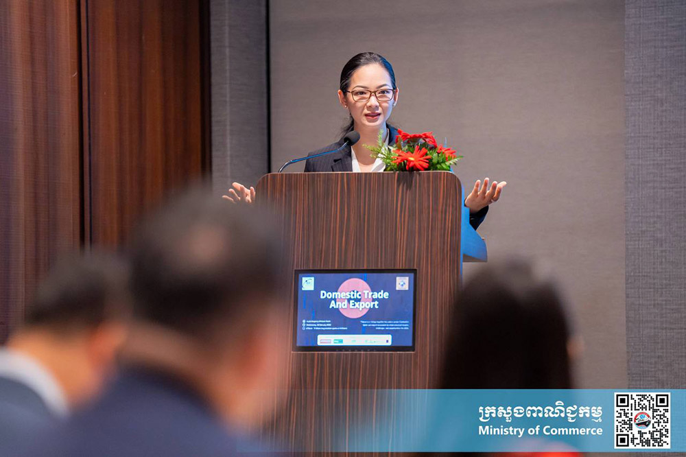 AKP Phnom Penh, January 28, 2026— Minister of Commerce H.E. Mrs. Cham Nimul (Pic. 1) delivers her remarks at the IBC Breakfast Seminar on Domestic Trade and Export, organised by International Business Chamber of Cambodia at Hyatt Regency Phnom Penh this morning. P...