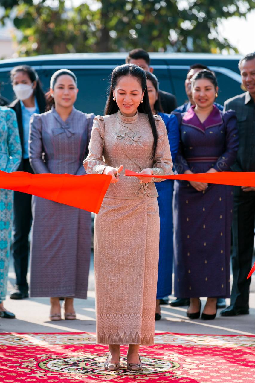 AKP Kandal, January 20, 2026 -- First Lady Lok Chumteav Dr. Pich Chanmony Hun Manet (Pic. 1) cuts red ribbon to inaugurate two 3-storey, 36-room school buildings at Takhmao Special Education High School in Kandal province this morning. Photo: Facebook Pa...