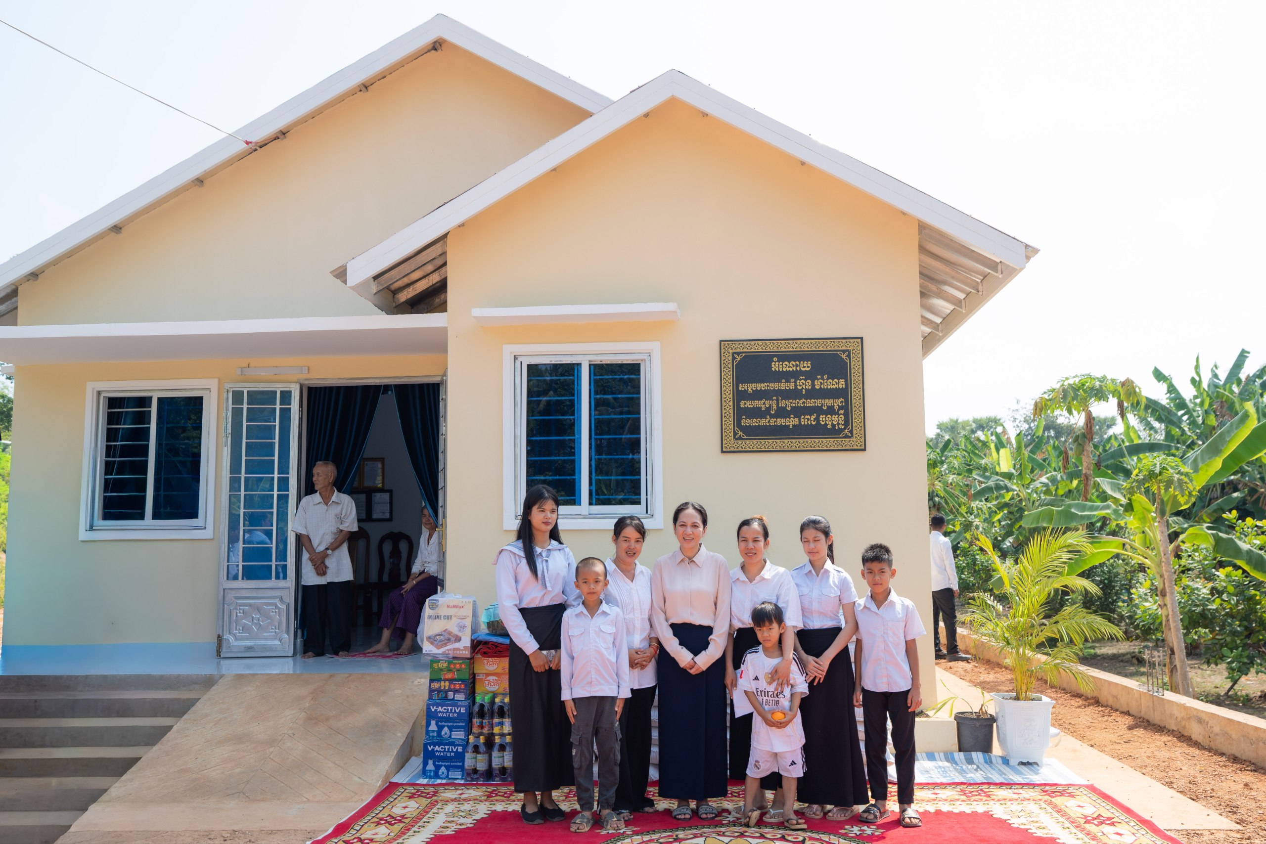 AKP Thbong Khmum & Kampong Cham, January 17, 2026— First Lady Lok Chumteav Dr. Pich Chanmony Hun Manet (4th L, Pic. 1) poses for a photo with the family of a fallen soldier during her mission to Thbong Khmum and Kampong Cham provinces this afternoon to hand over four n...