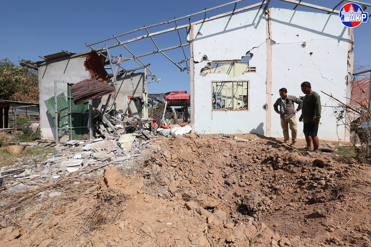 AKP Banteay Meanchey, January 03, 2026 — Scenes showing the impact of the war of aggression by Thai troops in the Boeung Trakuon area, located in Kok Romiet commune, Thmar Puok district, Banteay Meanchey province, and the violations of international law, as...