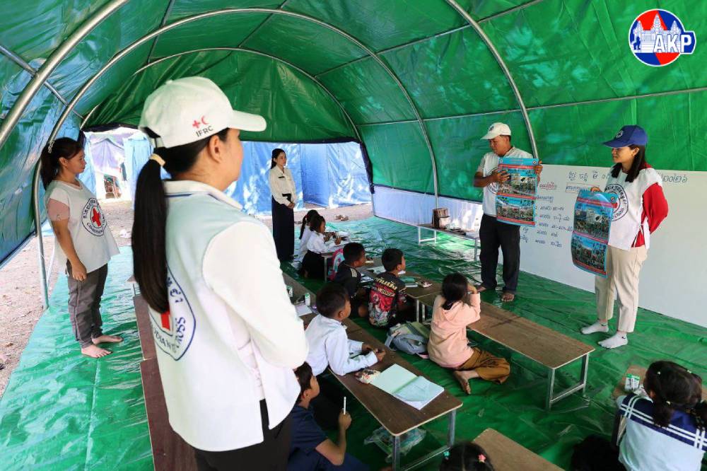 AKP Banteay Meanchey, January 05, 2026— The Cambodian Red Cross (CRC) team on Jan. 5 raises the awareness of displaced children at the Wat Chan Sy Samaki Ratanaram Safety Centre in Kop commune, O’Chrov district, Banteay Meanchey province, about the dangers of explosive...