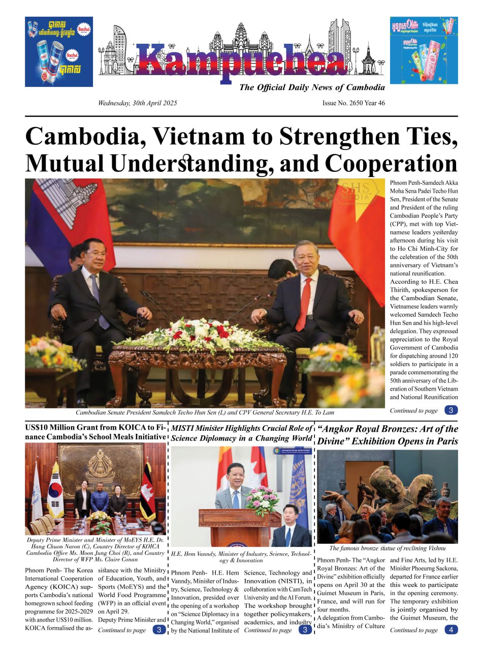 Kampuchea Newspaper on Wednesday, April 30, 2025