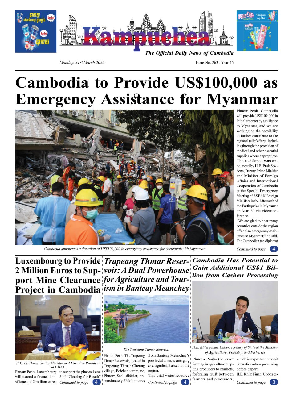 Kampuchea Newspaper on Monday, March 31, 2025