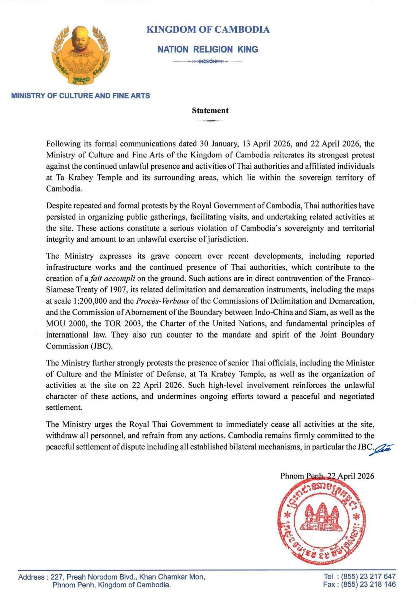 Cambodia Protests Thai Activities at Ta Krabey Temple