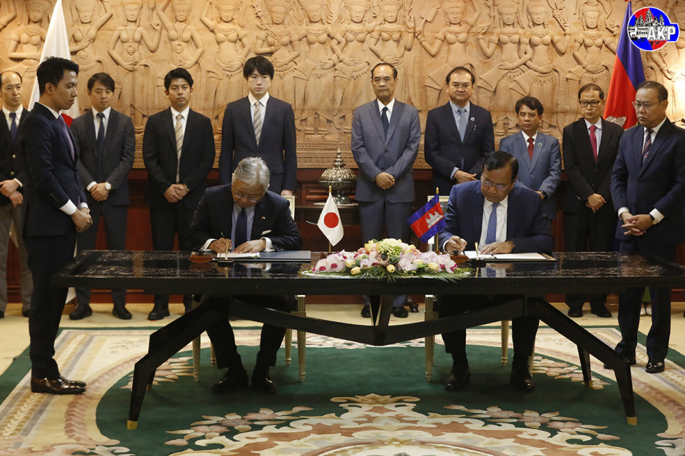 The Exchange of Notes and related documents on the extension of Japanese Government's Grant Aid was signed here this morning between Deputy Prime Minister H.E. Prak Sokhonn, Minister of Foreign Affairs and International Cooperation and H.E. Ueno Atsushi, Ambassador of Japan to Cambodia.