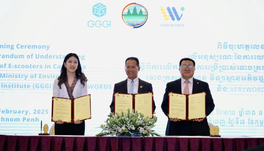 The Ministry of Environment, the Global Green Development Institute (GGGI), and Korea’s VERYWORDS company have entered into a Memorandum of Understanding to promote the use of electric vehicles to contribute to reducing greenhouse gases and toxic emissions in the environment in Cambodia.