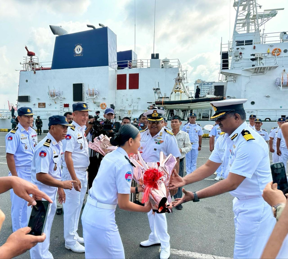 AKP Phnom Penh, February 17, 2025 -- Indian Navy Ship (INS) Sujata and Indian Coast Guard Ship (ICGS) Veera successfully concluded their four-day port call at Sihanoukville Autonomous Port on Feb. 17.