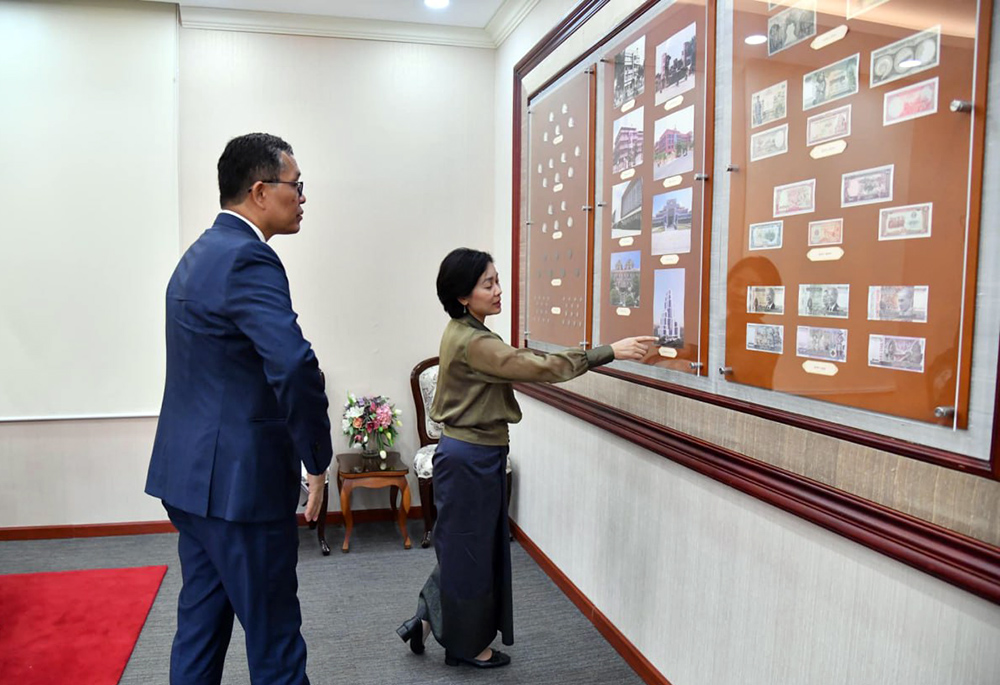 H.E. Dr. Chea Serey, Governor of the National Bank of Cambodia (NBC), received here on Feb. 24 a courtesy call from H.E. Vanlalvawna Bawitlung, newly appointed Indian Ambassador to Cambodia, at the NBC, Wat Phnom Building.