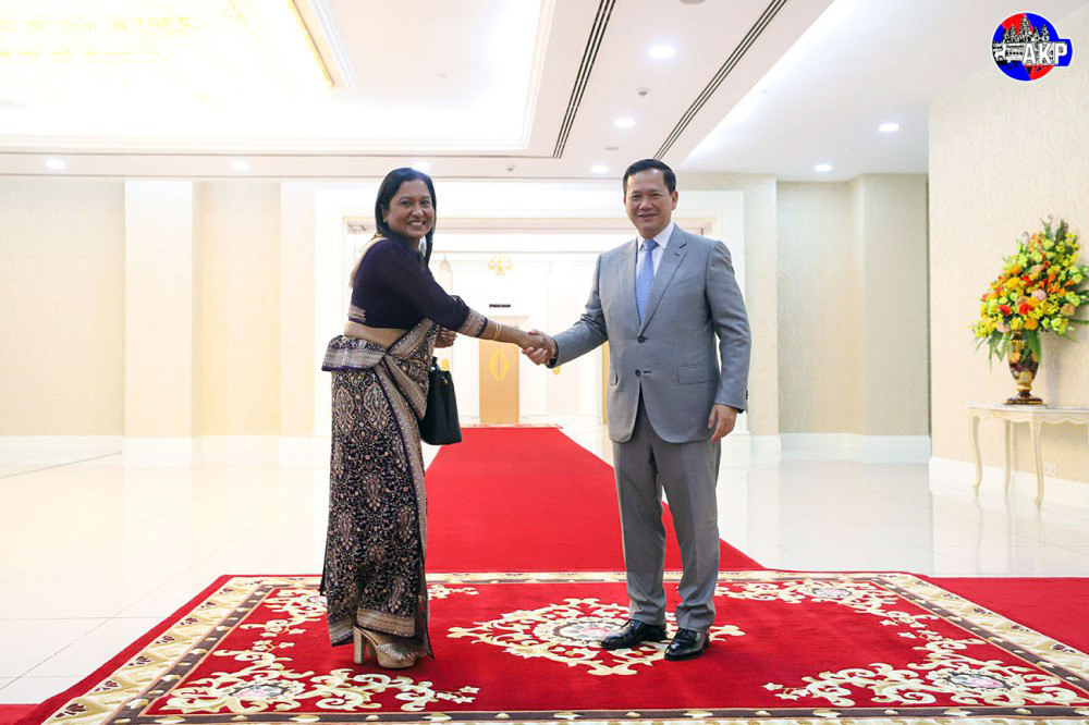 Samdech Moha Borvor Thipadei Hun Manet, Prime Minister of the Kingdom of Cambodia, received here at the Peace Palace this morning H.E. Ms. Wijayanthi Edirisinghe, Ambassador of the Democratic Socialist Republic of Sri Lanka to Cambodia with residence in Bangkok.
