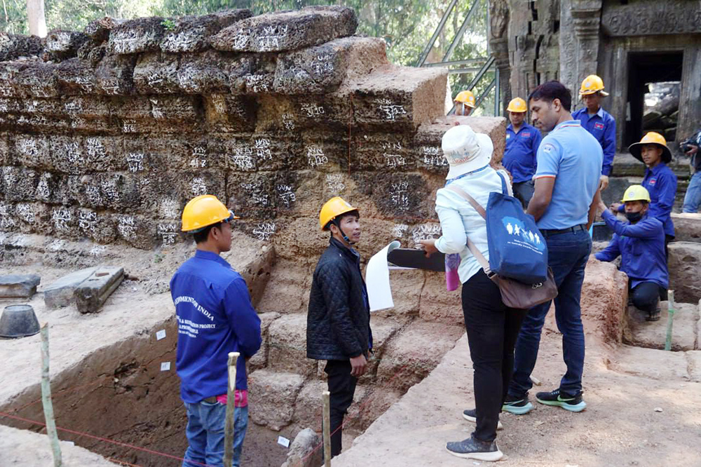 Mr. Chitranjan Kumar, the Head of the Ta Prohm Temple Restoration Site, reported that the restoration efforts are currently in their third phase. During this phase, the ASI has focused on repairing and reinforcing the laterite walls, which extend a total length of 30 metres. The walls have experienced considerable damage over time, prompting the need for archaeological excavations to assess the condition of the foundations. These investigations will inform the repair strategy, including documenting and registering the laterite stones.