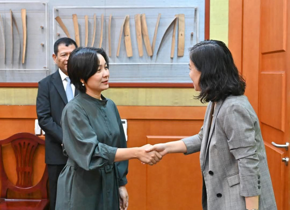 H.E. Dr. Chea Serey, Governor of the National Bank of Cambodia (NBC) received here on Feb. 28 a courtesy call by a delegation of the Chinese Embassy in Cambodia led by Ms. Zhong Jie, Commercial Counselor.