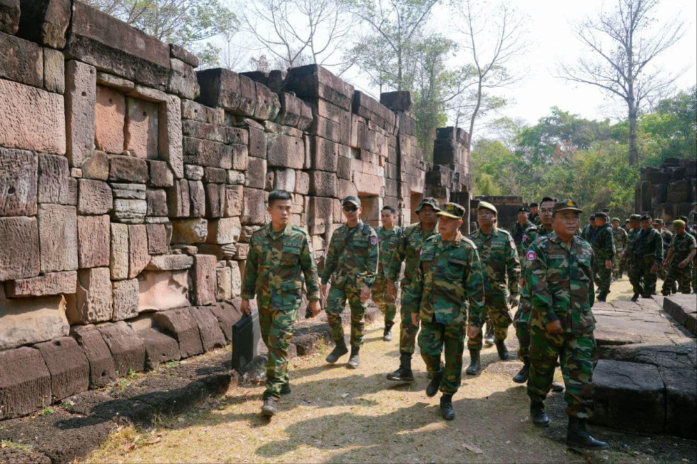 The visit included stops at key border posts, such as Marker No. 1 and the Preah Vihear, Ta Moan, and Ta Krabei Temples, where H.E. Senior Gen. Mao Sophan and his delegation engaged directly with stationed forces.