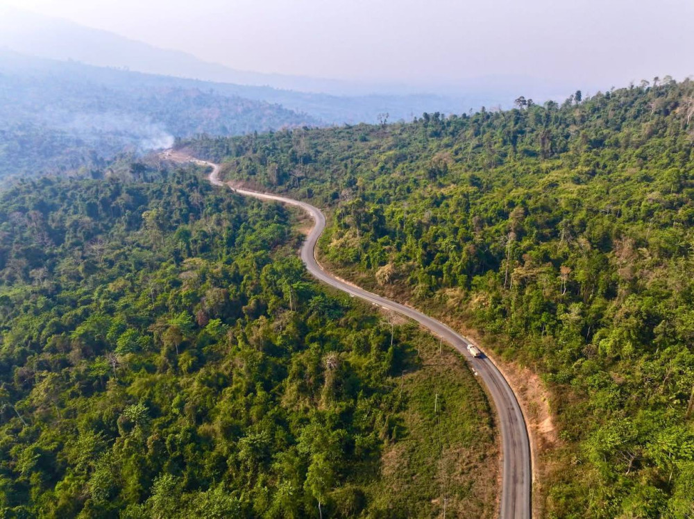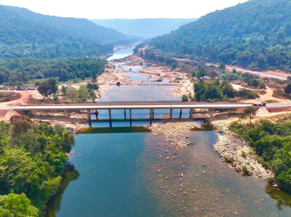 The newly built road passes through several stunning landscapes, including Promoy, O’ Som, Veal Veng, Stung Russey Chrum, and the highest bridge along the route at Stung Damnak Kbaun, adding to its scenic and strategic significance.
