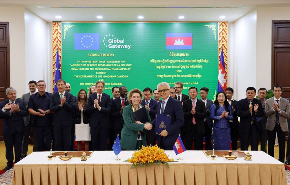 EIB Global – the European Investment Bank’s global arm – and the Ministry of Economy and Finance (MEF) of the Kingdom of Cambodia signed here on Mar. 14 an agreement for a €15 million EU grant to support the Agriculture Services Programme for an Inclusive Rural Economy and Agricultural Trade (ASPIRE-AT).