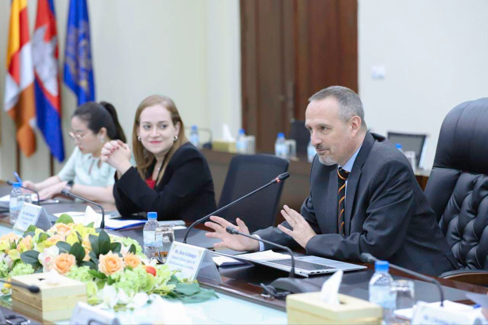 The discussion took place at the ministry on Mar. 13 between H.E. Heng Sour, the Minister of Labour and Vocational Training; Mr. Reto Grüninger, SDC Head of Cooperation; and Ms. Nellie Ghusayni, Head of Mission of IOM in Cambodia.