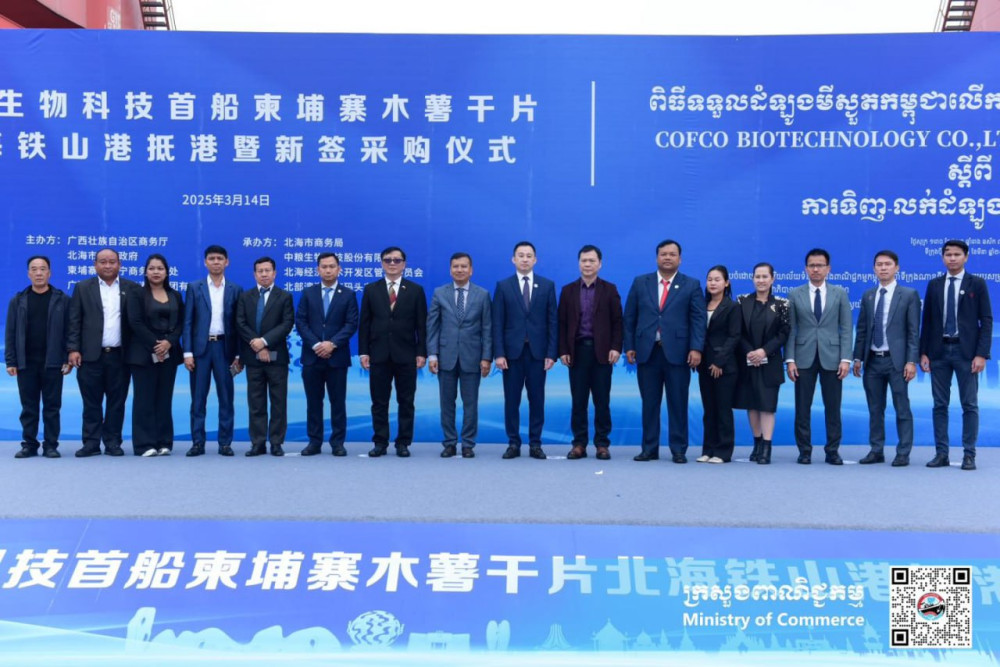 The event was attended by representatives from the Commercial Department of Guangxi Autonomous Region, the Cambodian Commercial Liaison Office in Nanning, the People’s Government of Beihai, relevant Beihai authorities, the Agricultural and Rural Development Bank of Cambodia, as well as cassava buyers and sellers from Cambodia and China.