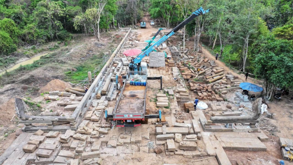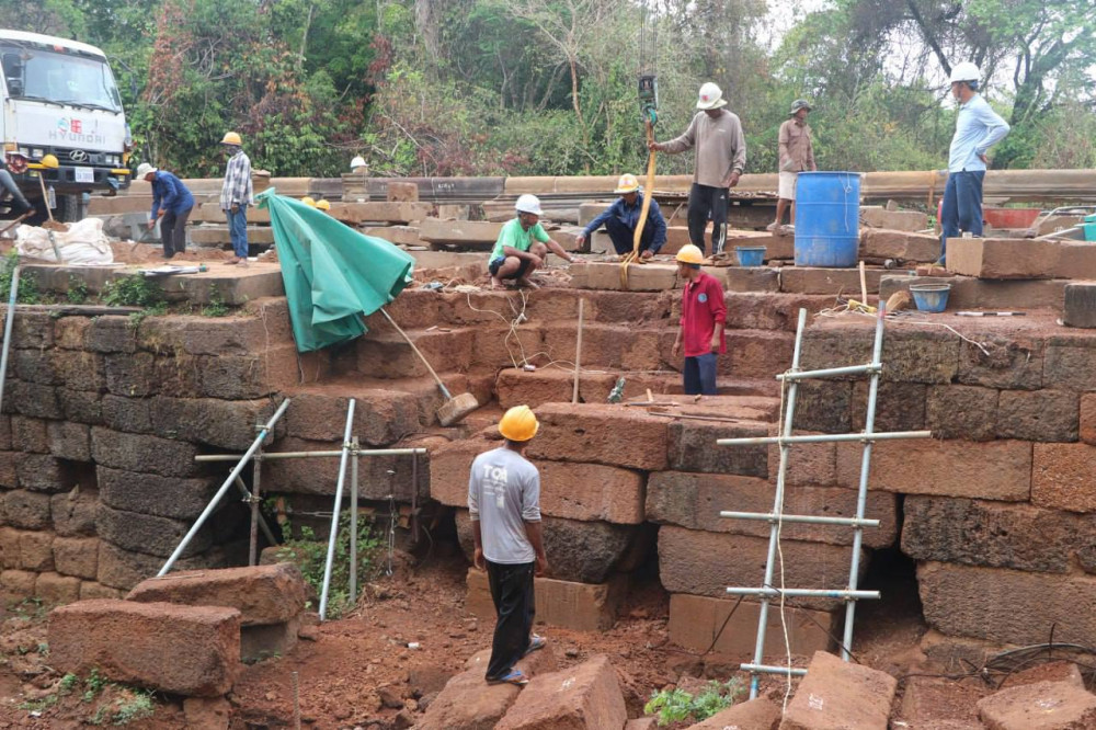They have also addressed a substantial portion of the collapsed causeway floor, she continued, pointing out that currently, efforts are focused on installing Naga heads on the southern side and repairing the damaged stones of the causeway.
