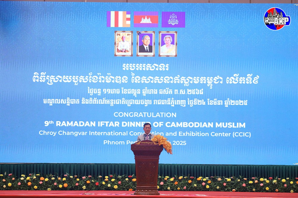 Samdech Moha Borvor Thipadei Hun Manet made the highlight when presiding over the 9th Ramadan Iftar Dinner of the Cambodian Muslim on Mar. 24 at the Chroy Changvar International Convention and Exhibition Centre, Phnom Penh.